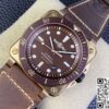 表壳采用CuSn8青铜材质,经磨砂抛光处理,质感细腻且富有复古气息,复刻工艺精准还原了正品的材质特性与外观效果。表镜选用带防眩目涂层的蓝宝石玻璃,不仅具备出色的耐磨性能,还能有效减少反光,确保表盘清晰可视,即使在强光环境下也不影响读时体验。表带采用小牛皮材质,搭配黑色编织橡胶元素,质地柔软且耐用,贴合手腕肌肤,长时间佩戴也无不适感。表扣为磨砂抛光青铜针扣设计,操作简便且稳固,与表壳材质相呼应,兼顾实用性与美观性,从材质到工艺都彰显出复刻表对品质的追求。