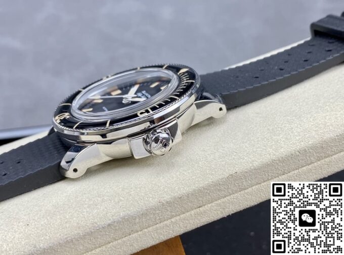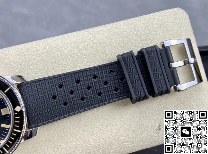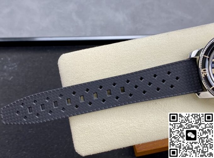 表镜选用蓝宝石水晶玻璃,具备出色的耐磨特性,同时经过精细工艺处理,有效减少强光或复杂环境下的反光干扰,确保表盘清晰易读。表带采用黑色橡胶材质,质地柔软亲肤,长时间佩戴也能保持舒适感,且橡胶表带经过特殊处理,不仅耐用性强,还会随着使用时间的增加而更显独特质感。表壳与表扣均由精钢打造,坚固耐用且美观大气,针扣设计操作便捷又稳固,确保手表在佩戴过程中不易脱落,将实用性与精致感完美融合。这些材质的巧妙搭配,既保障了复刻表的品质,又最大程度还原了正品的佩戴体验。