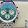复刻百年灵航空计时 AB0139211L1A1 的表盘采用清新的薄荷绿色,圆形轮廓简洁大气,散发着独特而现代的时尚感。棒状夜光时标清晰醒目,与时针、分针相互映衬,即便在光线不足的环境下,也能确保读时清晰准确。薄荷绿色的表盘搭配对比鲜明的计时器,视觉层次丰富,既保留了原版的设计精髓,又通过复刻工艺赋予其新的活力。表盘布局科学合理,功能显示一目了然,每一处细节都经过精心复刻,彰显出高端复刻表对细节的极致追求,无论是商务场合还是休闲时刻,都能轻松驾驭,展现佩戴者的独特品味。