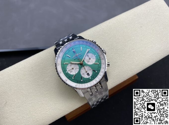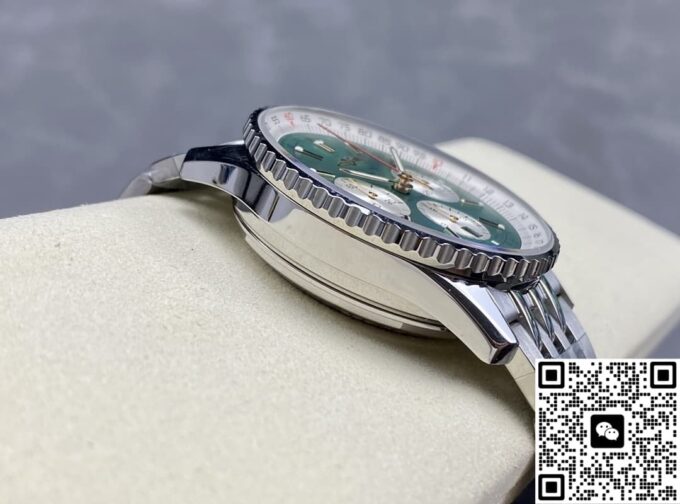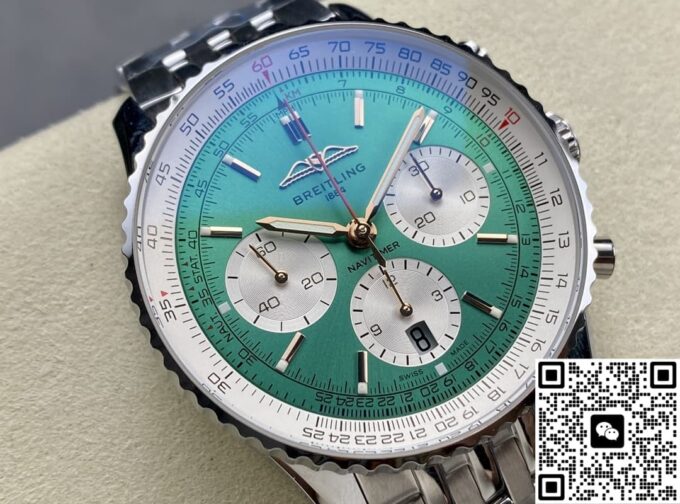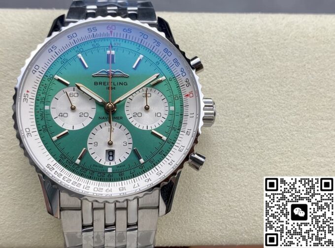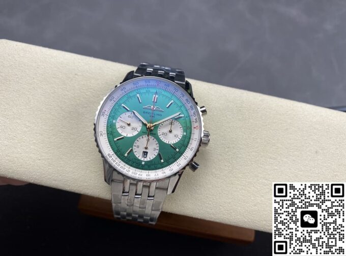 从佩戴体验来看,复刻百年灵航空计时 AB0139211L1A1 的表径为 41 毫米,表壳厚度 13.6 毫米,整体比例协调,适合多种手腕尺寸。精钢表链的质感与蝴蝶扣的稳固设计,确保佩戴时的舒适与安全,同时可根据手腕粗细灵活调节。薄荷绿色表盘与银色表链的搭配新颖独特,既适合搭配休闲装展现时尚活力,也能与正装搭配,彰显佩戴者的精致品味。无论是日常出行还是参加活动,这款复刻表都能成为点睛之笔,展现出独特的风格与魅力。