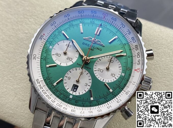 复刻百年灵航空计时 AB0139211L1A1 以精准的复刻工艺,还原了正品的外观与功能特点。从清新的薄荷绿色表盘、棒状夜光时标,到弧面蓝宝石水晶玻璃表镜、精钢七排式表链与蝴蝶扣设计,每一处细节都经过精心雕琢。30 米防水、日期显示与计时功能,以及旋入式蓝宝石表底的背透设计,兼顾实用与观赏,使其在多种场合都能展现独特魅力。对于追求经典设计与实用功能的复刻表爱好者而言,它不仅是一款记录时间的工具,更是融合了美学与机械艺术的精致单品。以高性价比实现对高端腕表风格的追求,无论是自用还是作为礼物,都是兼具品味与实用性的优选。BLS厂百年灵Breitling AB0139211L1A1,高仿百年灵Breitling航空计时Navitimer AB0139211L1A1价格及图片-太古汇表业复刻手表商城