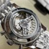 表镜选用弧面蓝宝石水晶玻璃,具备出色的耐磨特性,同时经过双面防眩处理,有效减少光线反射,确保在各种环境下都能清晰读取时间。表壳与表圈均采用精钢材质,表圈支持双向旋转,搭配环形飞行滑尺,不仅实用,更增添了手表的运动风格。表带采用精钢七排式航空计时表链,银色的表链质感十足,坚固耐用且贴合手腕,蝴蝶扣设计操作简便,佩戴稳固,兼顾了美观与实用性。这些材质的选择与搭配,通过精湛的复刻工艺,高度还原了正品的质感与佩戴体验,展现出复刻表在材质运用上的用心。
