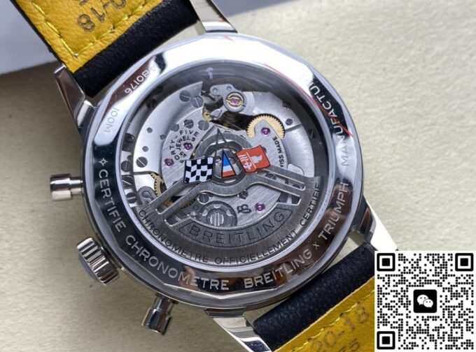 从表圈材质的精钢固定式设计,到表耳间距等细微参数的还原,BLS 工厂不放过任何一处细节。表圈的打磨倒角、表耳的弧度处理,都与原装风格一致,拿在手中,从视觉到触觉,都能感受到对原装的高度复刻。表底的背透设计,除了展示机芯,其边缘的密封处理、刻字细节等,也都力求精准,刻字清晰、规范,还原百年灵的品牌标识与型号信息等内容,彰显复刻的严谨态度。