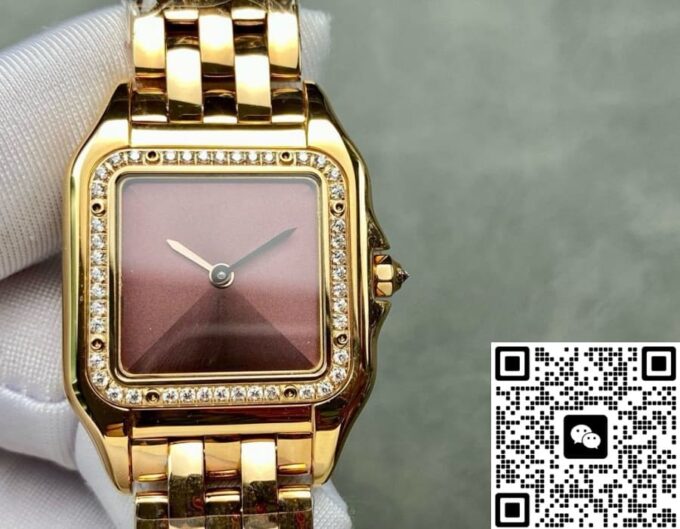 从佩戴体验出发,复刻卡地亚 PANTHÈRE DE CARTIER WJPN0035 注重细节复刻。表壳厚度 6.05 毫米,搭配方形表盘,整体比例协调,无论是搭配正装出席正式场合,展现优雅格调,还是搭配休闲装日常出行,增添时尚品味,都能轻松适配。金色表壳、表带与咖啡色表盘的色彩搭配和谐统一,折叠扣设计确保佩戴牢固,且能依据手腕粗细灵活调节,贴合不同佩戴者需求。表带材质的柔软度与表壳精致工艺相融合,带来舒适且具格调的佩戴感受,让这款复刻表不只是记录时间的工具,更是能彰显个人风格的配饰,复刻出正品在不同场景下都能出彩的适配性与佩戴魅力。