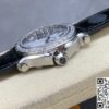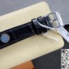 表壳采用精钢镶钻材质,精钢部分经过精细打磨,质感光滑且耐用,钻石镶嵌牢固,复刻工艺确保了每一处细节的逼真度。表带选用黑色皮质材料,质地柔软亲肤,长时间佩戴也不会产生不适感。黑色皮带不仅耐脏,还随着使用逐渐展现出独特的光泽,与银白表盘形成鲜明对比,视觉上更显协调。表扣采用精钢材质,设计简洁大方,扣合稳固,既能保证手表在佩戴时不易脱落,又方便日常调节松紧。这些材质的搭配不仅提升了复刻表的品质感,还最大程度还原了正品的佩戴体验,让使用者在触摸与佩戴间感受高端时计的魅力。