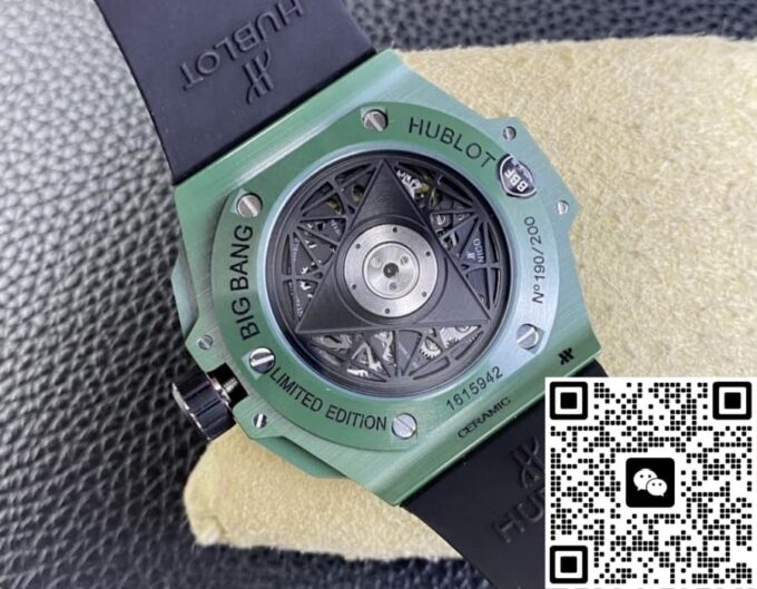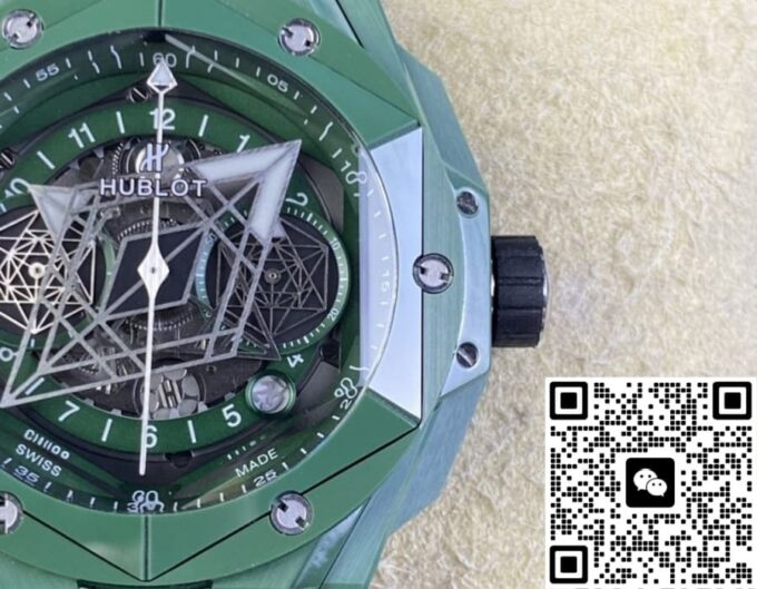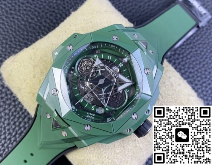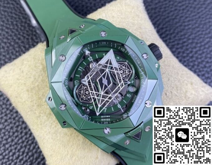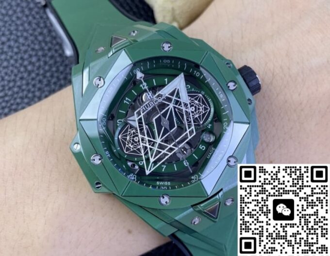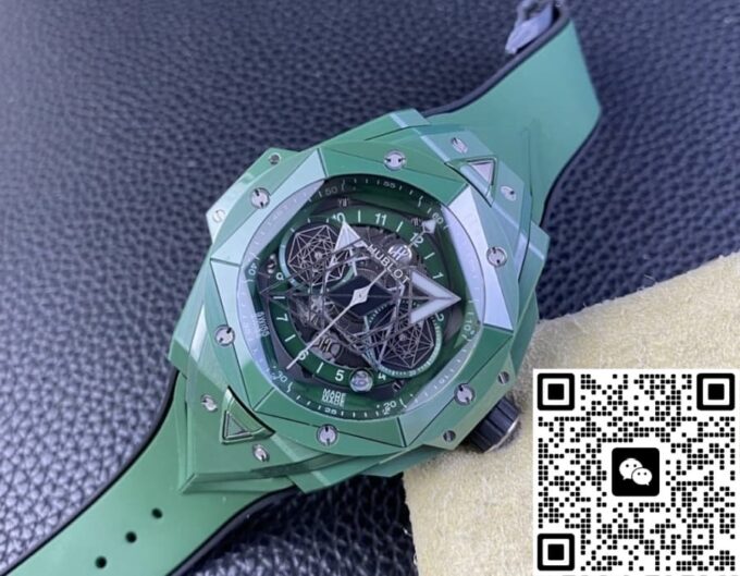 这款复刻宇舶 BIG BANG 418.GX.5207.RX.MXM22 手表,凭借其精准的复刻工艺,成功还原了正品的外观与部分功能特点。从独特的镂空哑光绿色表盘、精心搭配的时标,到高品质的蓝宝石水晶玻璃表镜、绿色橡胶表带与独特设计的黑色陶瓷折叠扣,每一处细节都体现了对品质的追求与把控。100 米的防水性能和背透设计,更是兼顾了实用性与观赏性,使其在各种场合都能展现出独特的魅力。对于追求时尚与品质的复刻表爱好者来说,它不仅仅是一款记录时间的工具,更是一件融合了美学与功能的精致配饰。以高性价比实现了对高端腕表风格的追求,无论是自用还是作为礼物,都是一个兼具品味与实用性的上佳选择。BBF厂宇舶Hublot 418.GX.5207.RX.MXM22,高仿宇舶Hublot大爆炸BIG BANG 418.GX.5207.RX.MXM22价格及图片-太古汇表业复刻手表商城。