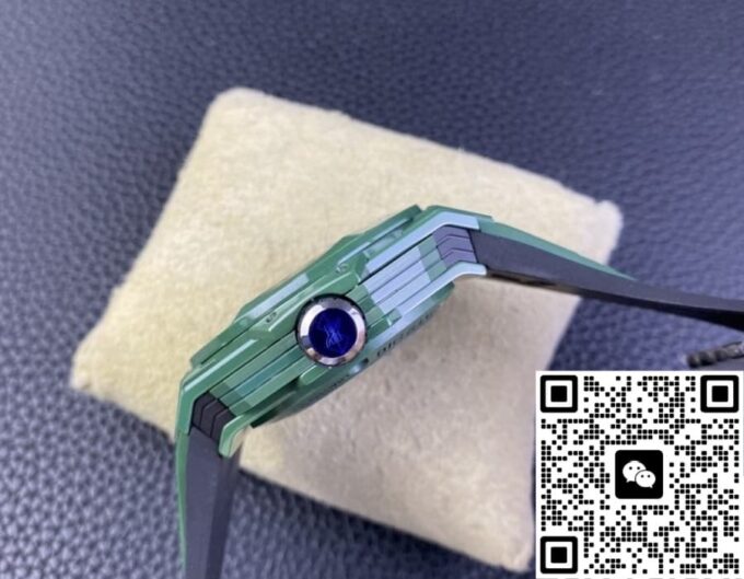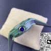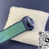 表镜选用蓝宝石水晶玻璃材质,具备卓越的耐磨性能。其表面经过精细处理,能够有效减少反光,即使在强光照射下,也能清晰地看到表盘上的时间显示,极大地提升了读时体验。表带采用绿色橡胶材质,质地柔软且富有弹性,贴合手腕肌肤,长时间佩戴也不会产生不适感。橡胶材质具有良好的耐用性和防水性,适合各种生活场景。表扣采用折叠扣设计,由黑色陶瓷制成,并且由 Sang Bleu 刺青工作室设计,不仅外观时尚独特,而且操作简便,能够牢固地固定手表,防止手表在佩戴过程中意外脱落。表壳、表圈均采用绿色陶瓷材质,表壳部分是缎面和镌刻绿色陶瓷,表圈则是缎面及抛光绿色陶瓷,这种材质不仅赋予手表独特的色泽与质感,还具有良好的抗刮耐磨性能,彰显出高端复刻表的品质与格调。