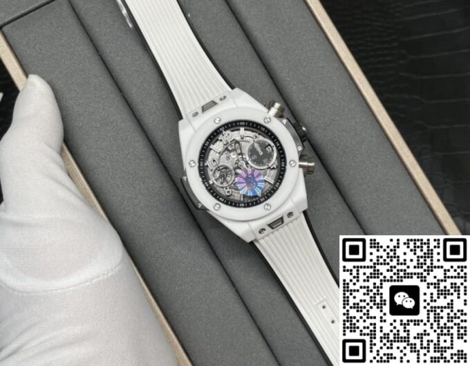 场景适配:白色与黑色的经典配色(陶瓷白 + 表盘黑 + 橡胶白),既具备商务场合的优雅气质,又能在休闲、运动场景中展现个性活力。复刻宇舶大爆炸系列的 “跨界基因”,使其成为一款 “多面手” 复刻表 —— 搭配正装时,陶瓷材质的精致感凸显品味;搭配运动装时,橡胶表带与镂空设计的动感风格完美契合,真正实现 “一表适配全场景”,复刻出正品 “打破风格边界” 的佩戴魅力。