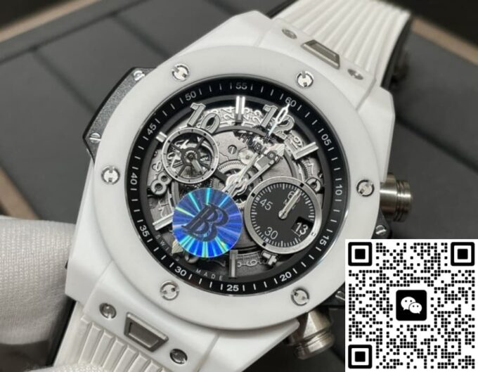 美学复刻:白色陶瓷与黑色镂空的碰撞,复刻出宇舶标志性的 “工业美学”,满足对高端腕表设计的追求;