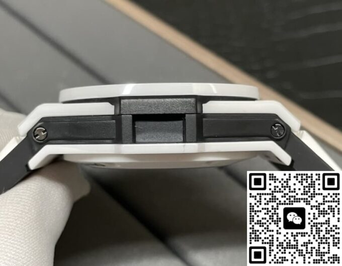 表壳与表圈:表壳选用微珠喷砂及抛光白色陶瓷,质感细腻,兼具陶瓷材质的轻盈与耐磨特性;表圈同样以白色陶瓷为基底,搭配6 颗 H 形钛金属螺丝(复刻正品的细节设计),强化机械风格的同时,提升整体结构的稳固性。白色陶瓷与钛金属的材质组合,既还原了正品的高端质感,又通过复刻工艺实现了轻量化佩戴体验。