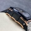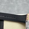 表圈材质融合缎面、抛光及微珠喷砂黑色陶瓷,搭配 6 颗 H 形钛金属螺丝,陶瓷材质轻盈、坚硬且不易过敏,微珠喷砂处理赋予独特磨砂颗粒感,缎面与抛光工艺点缀,丰富视觉层次,H 形钛金属螺丝不仅是装饰,更加固表圈结构。表镜采用防眩处理蓝宝石水晶表镜,有效减少光线反射,无论在强光还是弱光环境下,都能清晰读取时间。表带为结构化带衬里橡胶表带,橡胶材质柔软贴合手腕,结构化设计提升整体质感与耐用性,表扣采用王金和黑色 PVD 镀层钛金属,王金展现奢华,黑色 PVD 镀层钛金属增添硬朗风格,二者结合,在保障扣合牢固的同时,彰显独特品味。