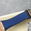 表带颜色采用蓝色,与原版色调一致,搭配折叠扣表扣类型,方便佩戴与摘取,同时保障佩戴时的稳固性。防水性能复刻到 100 米,满足日常防水需求,如洗手、淋雨等场景无需担忧进水问题。时标类型为棒状时标且带夜光功能,在复刻时,选用合适夜光材料,确保在黑暗环境下,时标清晰可辨,提升手表实用性与美观度。