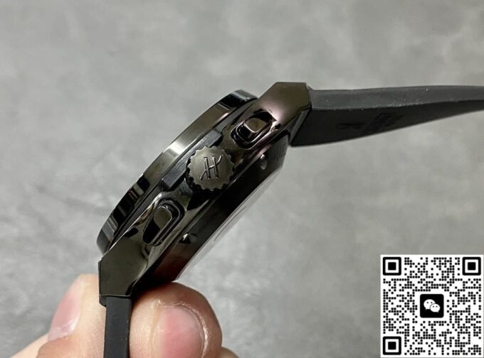 表径设定为 45 毫米,这一尺寸在男士腕表中,既保证了视觉上的大气感,又不会因过于夸张而影响佩戴舒适度。表壳材质采用抛光及缎面黑色陶瓷,陶瓷材质本身具备硬度高、耐磨、不易褪色的特性,复刻过程中,对陶瓷的处理工艺尤为关键。通过先进的打磨与抛光技术,还原原款表壳的质感,黑色陶瓷呈现出深邃且富有光泽的视觉效果,抛光与缎面的结合,让表壳在不同光线角度下,展现出丰富的层次感,既有着光滑面的亮眼,又有缎面的低调质感,复刻出原款独特的材质美学。