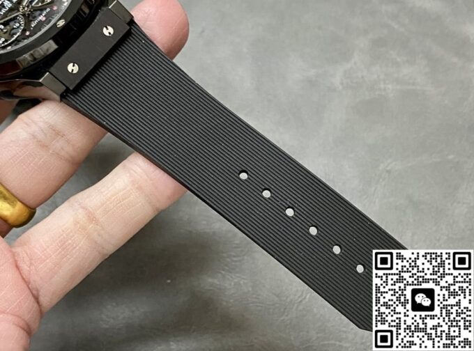 表带颜色为黑色,材质适配整体风格,在复刻时,选用优质材料,保证表带的质感与耐用性。表扣类型为折叠扣,这种表扣设计,方便佩戴与摘取,同时在外观上简洁大方,与腕表整体风格协调。复刻的折叠扣,在开合的流畅度、扣合的稳固性上都经过反复调试,确保使用体验贴近原款,细节之处彰显复刻的用心。
