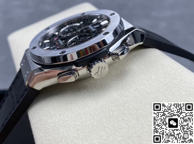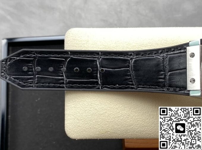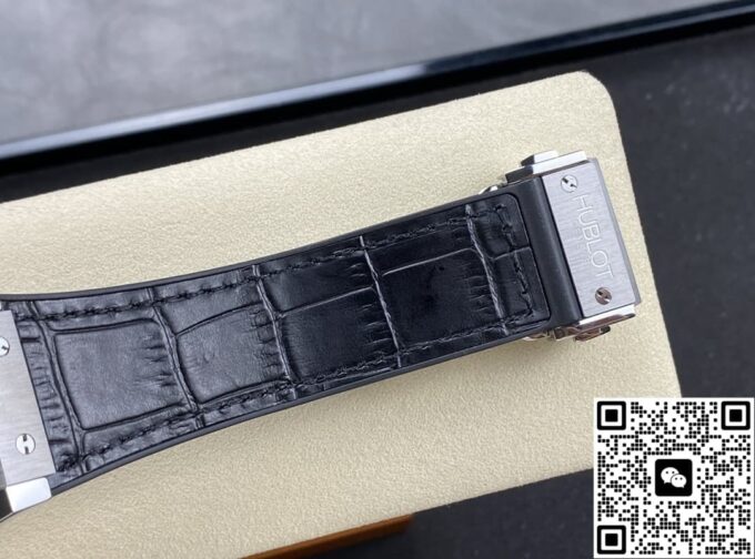 宇舶经典融合 525.NX.0170.LR 复刻手表表带颜色为黑色,材质选择贴合原版风格,质感细腻且具备良好的耐用性。折叠扣类型的表扣,复刻了原版的便捷与稳固特性,开合之间,工艺尽显。表扣的造型、打磨细节,都经过细致处理,与表带搭配相得益彰,既保证佩戴的实用性,又在外观上延续整体的精致感。