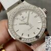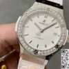 表壳采用钛金属材质打造,这种材质不仅具有轻盈的特性,佩戴起来不会给手腕造成过多负担,而且强度高、耐腐蚀,能够保证手表在各种环境下都能保持良好的状态。表圈同样采用钛金属材质,并镶嵌了42颗钻石,总重1.35克拉,搭配6颗H形钛金属螺丝,闪耀的钻石与硬朗的钛金属相互映衬,既增添了手表的奢华感,又不失运动风格,复刻工艺精准还原了正品的材质质感与外观细节,展现出高端制表工艺的精湛水准。