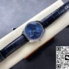 表盘采用经典圆形造型,深邃的蓝色表盘搭配阿拉伯数字时标,简洁大方又不失优雅韵味。时标清晰醒目,在不同光线环境下都能轻松读取时间,为表盘增添了层次分明的视觉效果。指针经过精心设计,运行精准流畅,与阿拉伯数字时标相互映衬,无论是白天的强光还是夜晚的昏暗场景,时间读取都毫无压力。整个表盘布局合理,将复古风格与现代实用主义完美结合,时刻传递出高端制表的精致内涵,尽显复刻表对细节的极致追求。