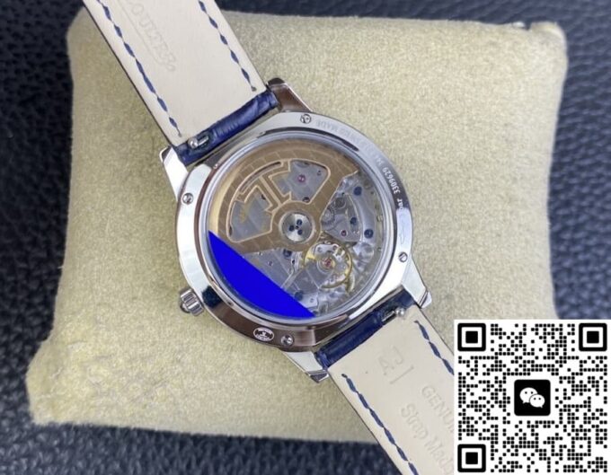 这款APS厂复刻积家约会Q3448430的核心亮点在于搭载了完全自主开发的定制一体机芯898A/1。这枚机芯不仅厚度精准控制在3.30毫米,更以28800次/小时的高振频确保走时稳定,动力储备达38小时。机芯结构采用模块化设计,宝石数30颗,零件数201个,背透设计清晰展现内部精饰的日内瓦纹与蓝钢螺丝,完全复刻原版机芯的传动布局与摆轮尺寸,彻底杜绝传统复刻机芯的“大摆轮破绽”。