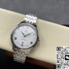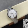 表壳以精钢材质打造,表径40毫米,厚度9.9毫米,这样的尺寸比例恰到好处,既不会显得过于庞大张扬,又具备一定的视觉辨识度,佩戴起来舒适贴合手腕。精钢材质赋予表壳出色的耐用性,能够抵御日常的轻微磕碰与磨损,保证手表长久如新。表带同样选用精钢材质,颜色为银色,与表壳材质相呼应,整体感十足。表带采用蝴蝶扣设计,不仅美观大方,而且佩戴稳固,调节也较为便捷,轻轻操作即可调整到合适的长度,确保佩戴的舒适性。表冠也是精钢材质,符合人体工学设计,操作手感舒适紧实,在调校时间时能带来良好的体验,同时也提升了手表整体的机械美感。