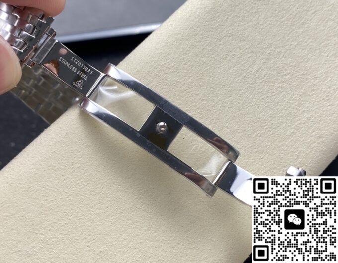 从整体外观来看,这款复刻欧米茄碟飞434.10.40.20.02.001在美观与舒适方面达到了很好的平衡。银色的表盘、表壳与表带相互搭配,呈现出简洁而优雅的视觉效果,背透设计更是能让佩戴者欣赏到机芯运转的美妙,增添了一份机械表独有的魅力。精钢表带质感细腻,蝴蝶扣的设计确保佩戴牢固,长时间佩戴也不会给手腕带来明显负担。无论是搭配正装出席商务会议,还是搭配休闲装漫步街头,这款复刻手表都能完美适配,成为整体造型的亮点,展现出佩戴者的优雅格调。