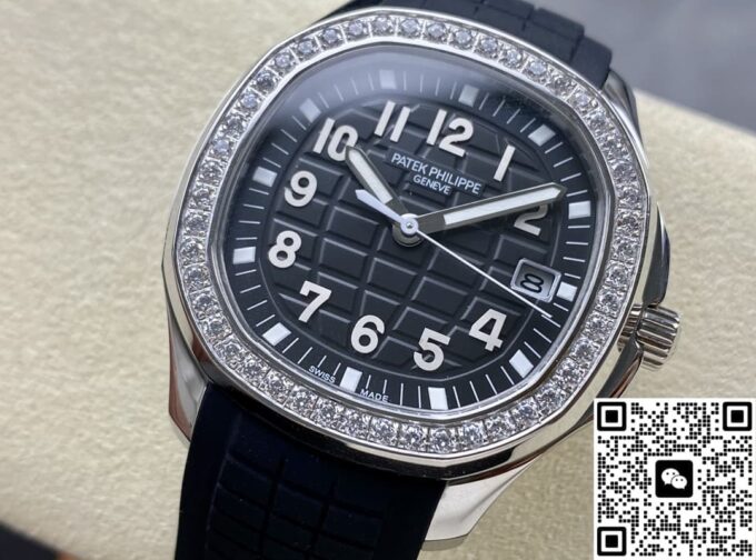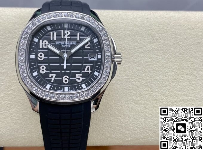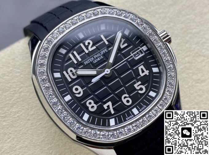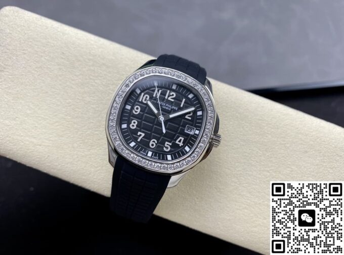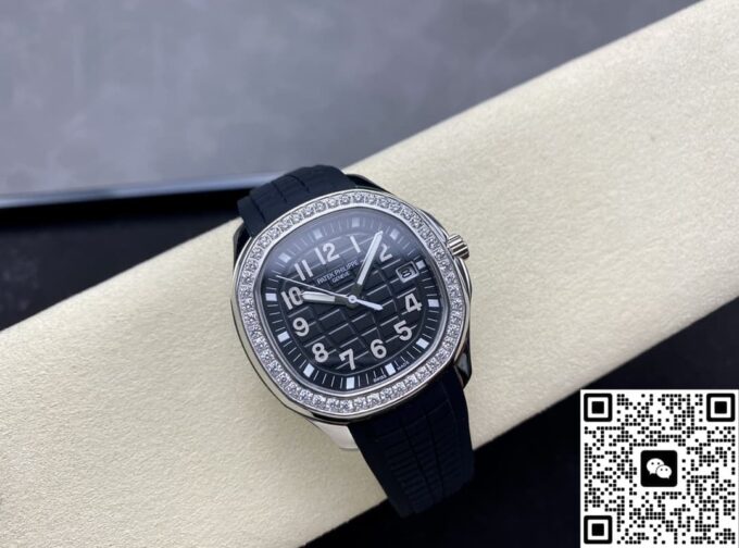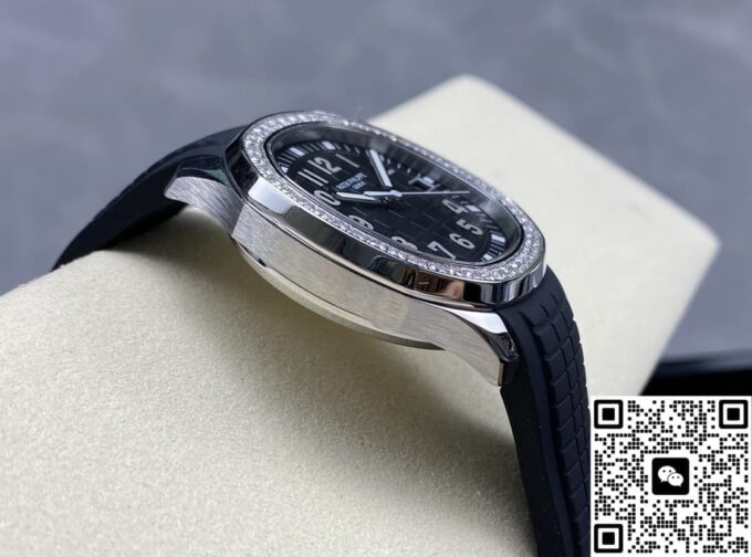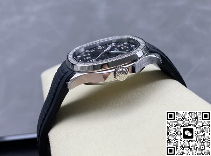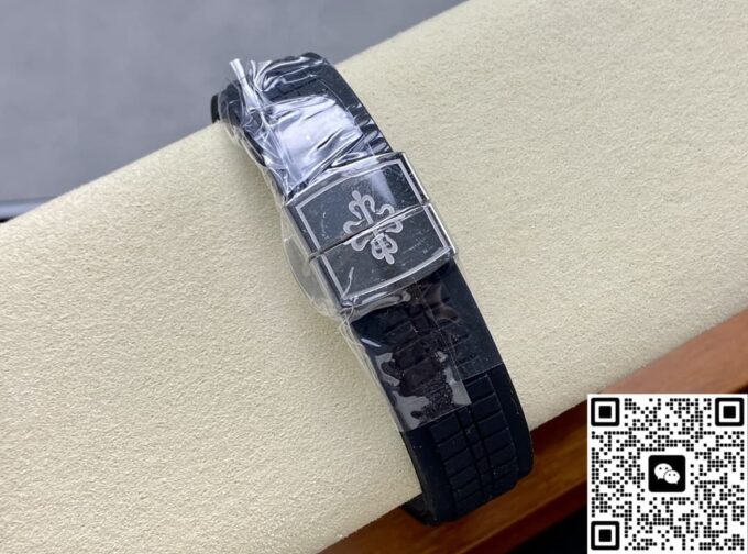 表镜采用蓝宝石水晶玻璃,具备优异的耐磨、抗刮特性,经精细处理后,清晰呈现表盘内容,有效减少强光下的反光干扰,保障读时清晰。表壳选用不锈钢材质,坚固耐用,赋予手表可靠的质感与防护性能,还原正品的硬朗质地。表盘以黄铜材质为基底,饰有 Aquanaut 浮雕图案,搭配黑色漆面,呈现出独特的视觉效果,复刻工艺精准还原这些细节,让浮雕纹理与漆面质感贴近正品。表圈同样采用不锈钢材质,镶嵌 48 颗明亮式切割顶级威塞尔顿钻石,在复刻过程中,精准还原钻石镶嵌工艺,使表圈闪耀璀璨光芒,提升整体奢华感。表带为复合防水材质,质地坚韧且贴合手腕,经特殊工艺处理,兼具耐用性与舒适感,长时间佩戴不易变形、老化。表扣选用不锈钢材质,采用折叠扣设计,操作便捷,扣合稳固,既还原正品的实用结构,又保障佩戴过程中手表不易脱落,从表镜到表扣,每一种材质的选择与复刻,都在追求品质还原与佩戴体验的平衡。