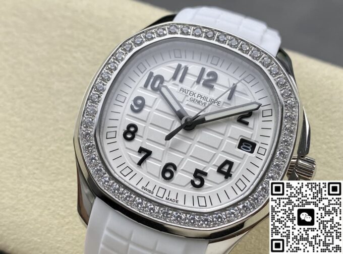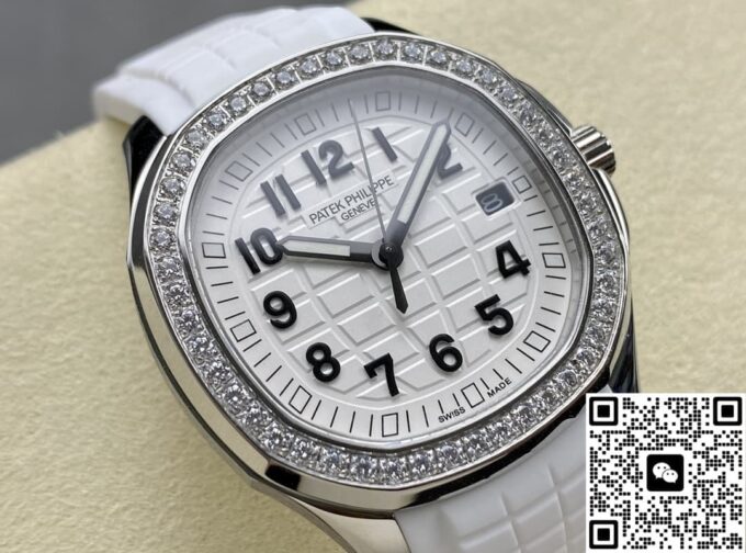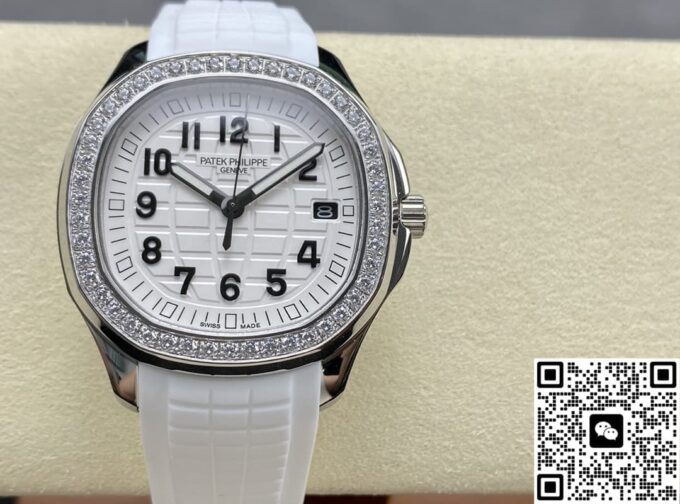 在材质选用上,复刻百达翡丽 AQUANAUT 5267 – 200A – 010 同样用心。表壳材质为不锈钢,坚固耐用,赋予手表可靠的物理防护,同时不锈钢特有的金属质感,经复刻工艺处理后,呈现出细腻且富有光泽的外观,提升整体档次。表盘材质采用黄铜,其上饰有 Aquanaut 浮雕图案,通过精湛复刻工艺,将浮雕图案的纹理与立体感精准呈现,让表盘不仅是时间显示的载体,更成为富有艺术感的装饰面。表圈材质为不锈钢,且表圈镶嵌 48 颗明亮式切割顶级威塞尔顿钻石,复刻过程中,对钻石的镶嵌位置、排列方式以及钻石本身的视觉呈现都进行精细还原,使表圈在光线照射下,闪耀出璀璨光芒,增添奢华感。表镜材质为蓝宝石水晶玻璃,具备出色的耐磨、抗刮特性,经复刻处理后,其透光性极佳,能清晰呈现表盘细节,即便在强光环境下,也可有效减少反光干扰,保障读时清晰。表冠采用旋入式表冠,这种设计在复刻时严格遵循正品结构,旋入与旋出操作顺滑,既起到良好的防水辅助作用,又彰显机械质感。表带材质为复合防水材质,质地柔韧,贴合手腕,长时间佩戴舒适无负担,且经特殊工艺复刻处理,具备不错的耐用性,能适应多种环境佩戴,表扣材质为不锈钢,与表壳材质相呼应,在保障实用性与美观性的同时,进一步强化整体质感的统一性,通过这些优质材质的复刻运用,还原正品的品质与佩戴体验。
