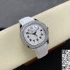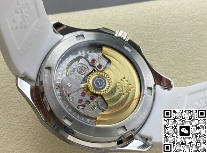复刻百达翡丽 AQUANAUT 5267 – 200A – 010 在外观上精准复刻正品设计。表径达 38.8 毫米,表壳厚度为 8.61 毫米,比例协调,佩戴于腕间大小适中。白色表盘简洁纯粹,方形轮廓勾勒出硬朗且独特的风格,区别于常规圆形表盘,展现别样个性。白色表带与表盘色调相呼应,整体视觉和谐统一,营造出简洁大方又不失精致的氛围。表扣采用折叠扣设计,操作便捷的同时,扣合稳固,彰显复刻工艺对细节的精准把控。表底为密底设计,虽无法直接观赏机芯,但增添了一份神秘质感,也契合其整体风格定位。30 米的防水性能,可应对日常洗手、轻微溅水等场景,为佩戴提供基础防护。阿拉伯数字夜光时标,在昏暗环境下清晰可辨,读时便捷,复刻工艺将这些外观细节一一还原,从表耳间距 19.03 毫米的精准尺寸,到表盘形状、颜色的呈现,每一处都力求复刻正品的经典韵味,让这款复刻表在外观上具备较高辨识度与品质感。