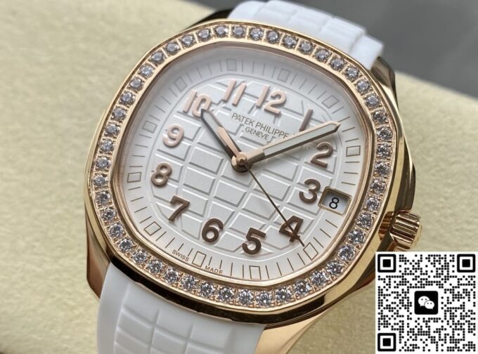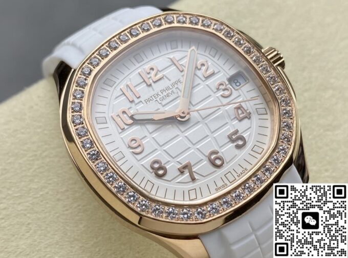 复刻百达翡丽 AQUANAUT 5268-200R-001 的表盘选用简洁白色调,方形轮廓利落干练,传递出时尚且个性的气息。阿拉伯数字时标清晰易读,规整排列,与指针精准配合,读时便捷又直观。白色表盘在不同光线环境里,呈现细腻光泽变化,适配正式场合的典雅,也能在日常佩戴时彰显别致品味。表盘布局经过复刻工艺精心还原,功能显示清晰明了,每一处细节都复刻到位,从时标到指针的比例,再到表盘纹理,都尽显高端复刻表的精致质感,精准复刻正品设计精髓。