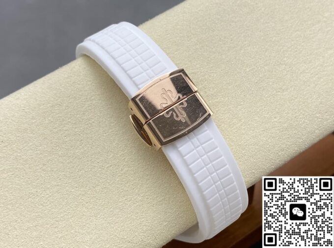 从佩戴体验看,复刻百达翡丽 AQUANAUT 5268-200R-001 注重细节。表壳厚度 8.5 毫米,搭配方形表盘,整体比例协调。不管是搭配正装出席商务场合,还是搭配休闲装日常出行,都能轻松适配,展现独特风格。白色表盘与表带色彩统一,视觉连贯和谐,折叠扣设计确保佩戴牢固,还可依据手腕粗细灵活调节。复合防水表带的贴合度与表壳精致复刻工艺结合,带来舒适又具格调的佩戴感受,让这款复刻表不只是计时工具,更是彰显个人品味的配饰,凭借复刻的细腻,在不同场景展现魅力。