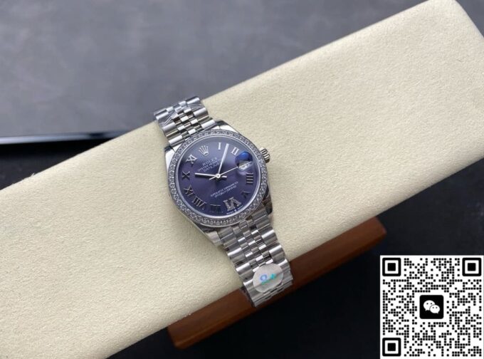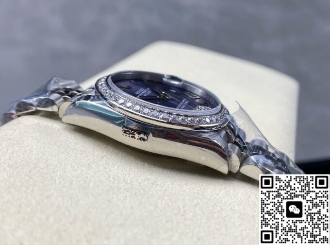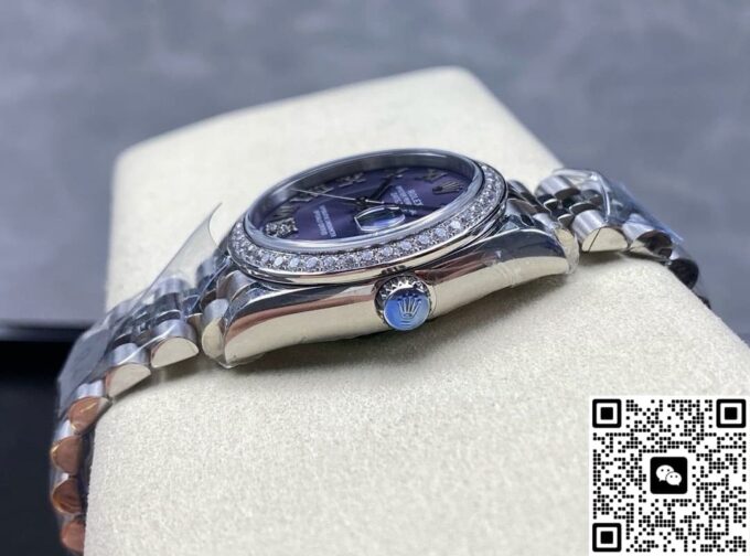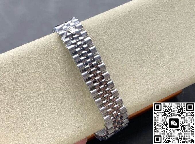 复刻劳力士日志型 278384RBR – 0030 在佩戴体验上注重细节打磨。表径 31 毫米,搭配圆形表盘,整体比例协调,无论是搭配正装出席商务会晤,还是搭配休闲装漫步街头,都能自然融入穿搭风格,轻松适配多种场合。银色表带与茄紫色表盘色彩搭配和谐,视觉上形成优雅呼应,隐蔽式折叠皇冠带扣确保佩戴牢固,还可依据手腕粗细灵活调节。蚝式钢表带的坚韧与表壳钢材质的精致工艺相呼应,带来舒适又具格调的佩戴感受,让这款复刻表不只是计时工具,更是彰显个人品味与风格的腕间配饰,凭借复刻的精准度与材质特性,为佩戴者营造契合正品韵味的佩戴体验。