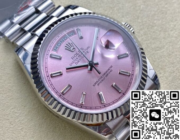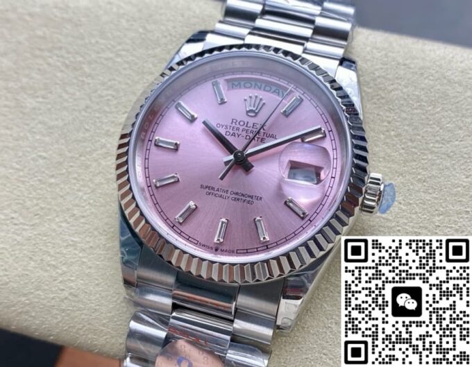 高仿劳力士Rolex星期日历型Day-Date m128239-0071 8+厂 粉色表盘是8+厂通过原装劳力士一比一开模,采用顶级材料制作的高仿劳力士手表,打磨精致媲美原装,全网最低价格物超所值。太古汇表业提供完善的保养和维修售后服务,极致体验轻松玩表。