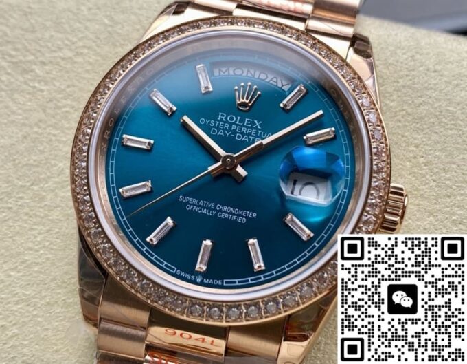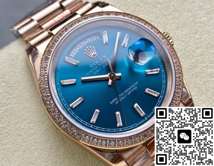 高仿劳力士Rolex星期日历型Day-Date m128345rbr-0083 8+厂 玫瑰金表带是8+厂通过原装劳力士一比一开模,采用顶级材料制作的高仿劳力士手表,打磨精致媲美原装,全网最低价格物超所值。太古汇表业提供完善的保养和维修售后服务,极致体验轻松玩表。
