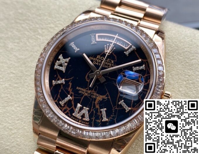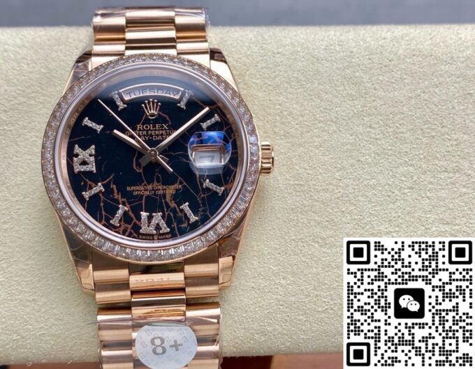 劳力士Rolex星期日历型Day-Date m128395tbr-0010 8+厂 黑色表盘