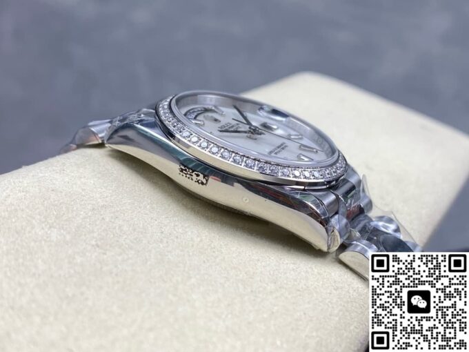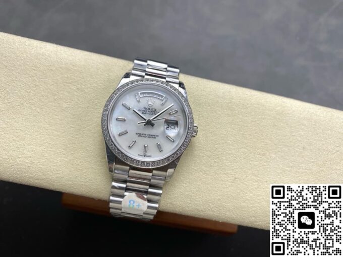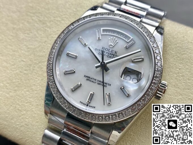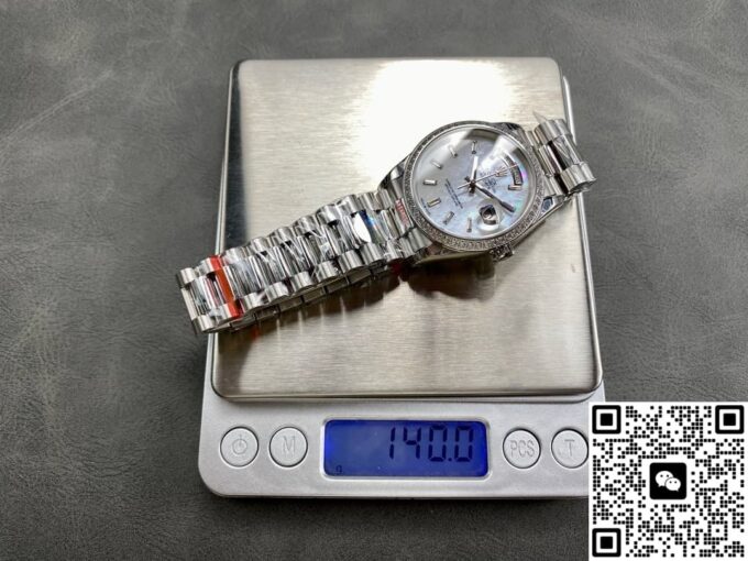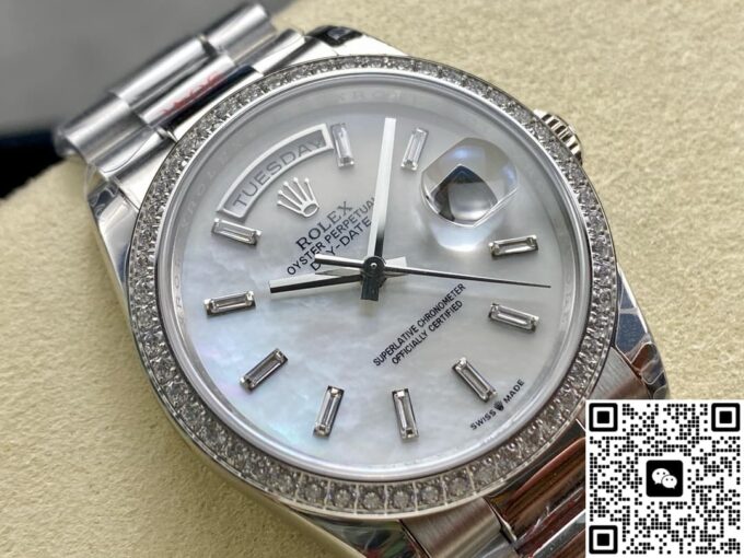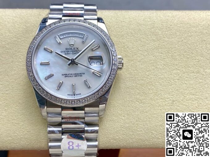 复刻劳力士星期日历型 m128349rbr – 0049 以其卓越的复刻工艺,在外观设计、材质选用、功能配置以及佩戴体验等方面都表现出色。从纯净优雅的白色表盘、镶钻时标,到高品质的仿白金材质、珍珠贝母表盘,再到实用的星期显示、大日历功能以及舒适的佩戴感受,每一个细节都经过精心雕琢,力求还原正品的精髓。