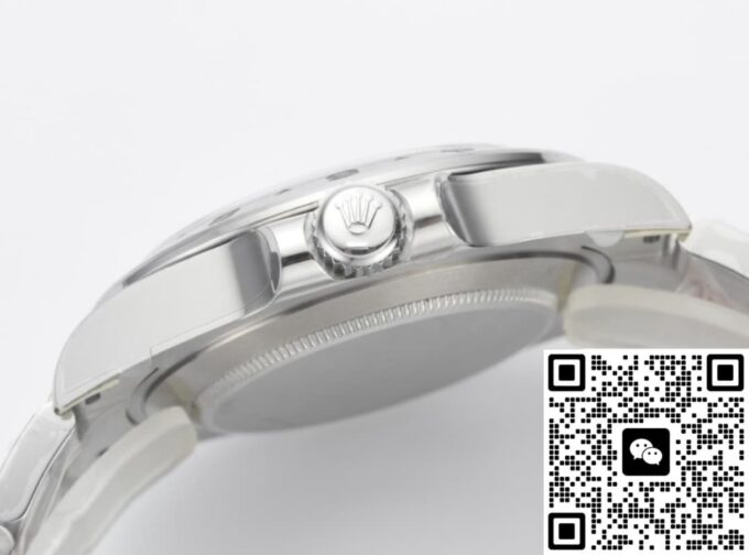 功能上,这款C厂复刻的劳力士探险家M226570-0001绝非徒有其表。其核心亮点之一是双时区(GMT)功能,通过独立的24小时刻度外圈及额外的GMT指针,佩戴者可同时轻松掌握本地时间与第二时区时间,是商务差旅或环球旅行的绝佳助手。清晰易读的日期窗口位于3点钟位,配合蓝水晶凸透镜,日期信息一目了然。此外,复刻手表具备出色的100米防水性能,得益于旋入式表冠与密底设计的精良密封性,使其无惧日常洗手、淋雨甚至游泳等生活场景,实用性与可靠性兼备。