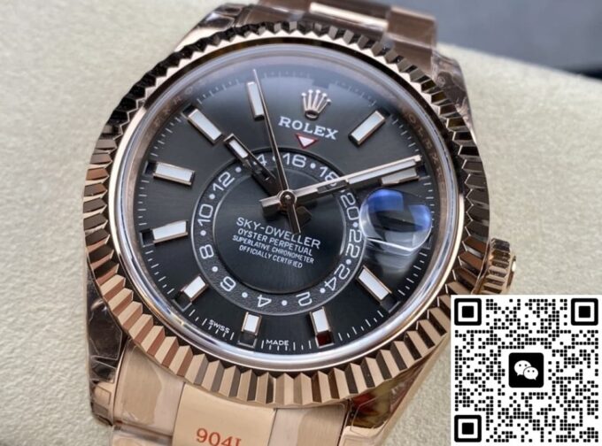 高仿劳力士Rolex纵航者Sky-Dweller m326935-0007 N厂 玫瑰金表带是N厂通过原装劳力士一比一开模,采用顶级材料制作的高仿劳力士手表,打磨精致媲美原装,全网最低价格物超所值。太古汇表业提供完善的保养和维修售后服务,极致体验轻松玩表。