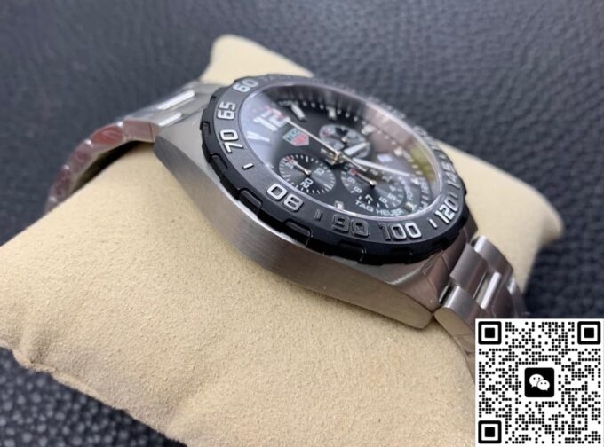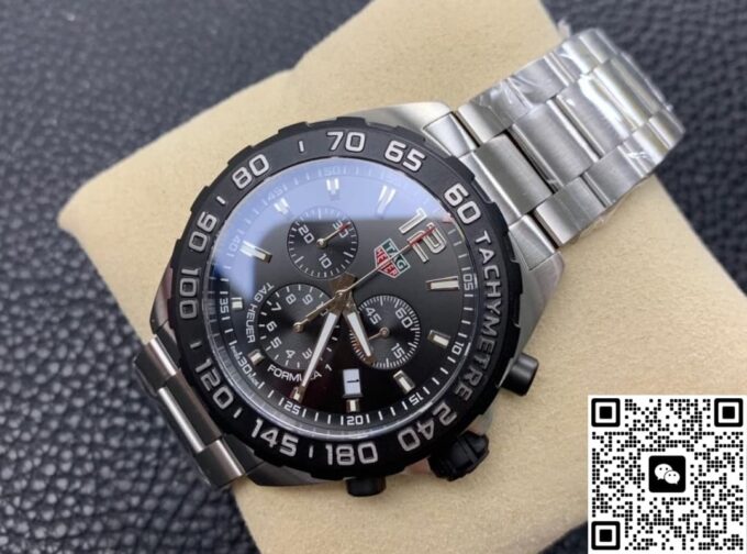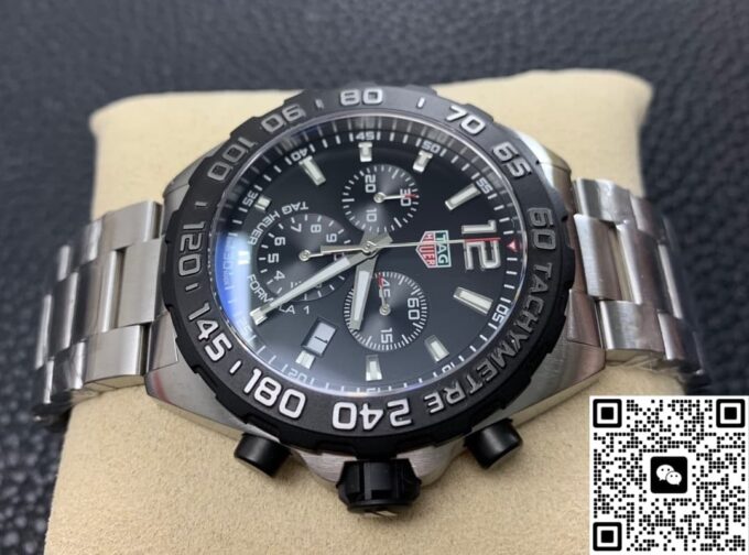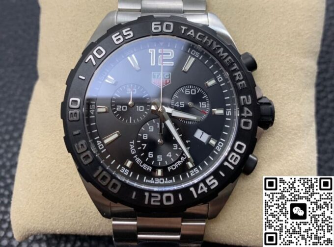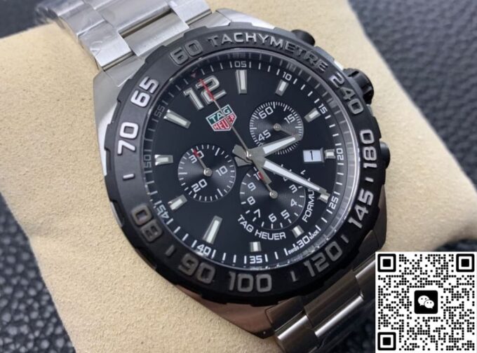 复刻泰格豪雅TAG Heuer F1 CAZ1010.BA0842的表盘以经典黑色为基调,圆形轮廓洋溢着运动活力,完美复刻正品的动感基因。棒状夜光时标布局规整,在光线昏暗时散发柔和荧光,确保读时清晰,既契合运动场景的功能性需求,又在视觉上形成简洁有力的线条感。黑色表盘与银色精钢表带形成强烈色彩对比,复刻工艺对正品细节的还原度极高——时标的棱角、表盘的哑光质感,乃至夜光涂层的均匀度,都经过反复雕琢,让复刻表在风格上与正品一脉相承。这种设计既能在运动时彰显利落气场,也能在日常佩戴中展现低调的时尚张力,成为复刻表爱好者彰显个性的绝佳选择。