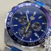 复刻泰格豪雅 TAG Heuer F1 的这款腕表,以精准复刻工艺还原正品的活力风格。蓝色圆形表盘作为视觉核心,散发着运动与时尚的交融气质。棒状时标利落醒目,与指针形成简洁的读时系统,在复刻过程中严格把控时标与指针的比例、色泽,确保在不同光线环境下都能快速读取时间。蓝色表盘经过复刻工艺的细腻处理,既保留了正品的深邃质感,又在光影变化中展现出独特的视觉层次 —— 阳光直射下,表盘色泽明快;室内光线下,蓝色基调更显沉稳,完美适配运动场景与日常佩戴。表盘布局围绕计时功能与日期显示展开,复刻时对功能区域的划分精准还原,计时按钮与表冠的位置、尺寸均与正品高度契合,操作逻辑清晰,彰显复刻表对细节的执着追求。