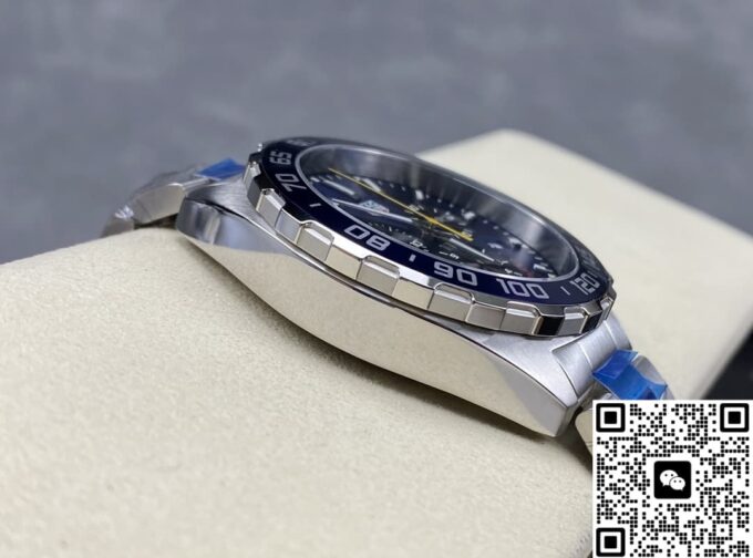 表圈:选用铝合金材质,复刻出正品的轻量化特质。铝合金表圈不仅减轻了腕表整体重量,更在色彩与纹理上精准复刻 —— 银色表圈与蓝色表盘形成鲜明对比,视觉上极具冲击力,同时铝合金的耐用性也适配运动场景下的日常使用。
