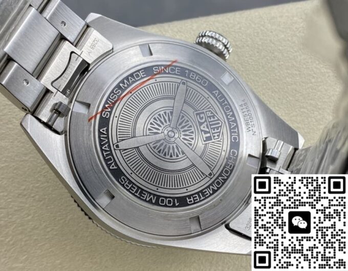 功能上,复刻泰格豪雅 HEUER AUTAVIA WBE5116.EB0173 具备日期显示功能,简约实用,日常查看日期便捷高效,契合手表作为计时工具的基础需求。100 米防水性能,为日常使用及一些轻度涉水场景兜底,如游泳、水上运动等(非专业潜水场景),都能安心佩戴,无需频繁摘卸,提升使用便利性。